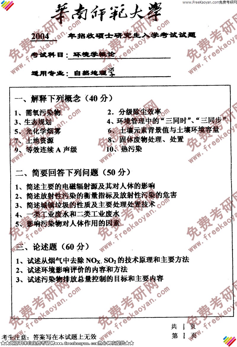 专业课考研经验 本站小编 FreeKaoyan 2018-01-22华南师范大学2002年考研真题-自然地理学