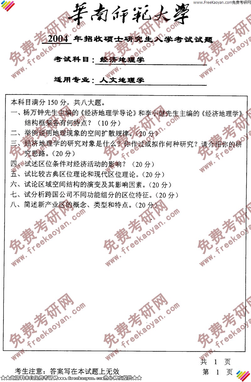 专业课考研经验 本站小编 FreeKaoyan 2018-01-22华南师范大学2003年考研真题-人文地理学