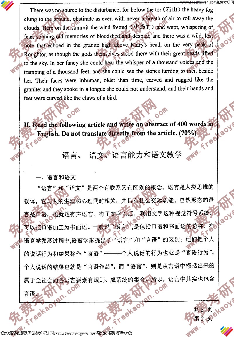 专业课考研经验 本站小编 FreeKaoyan 2018-01-22华南师范大学2002年考研真题-作品分析
