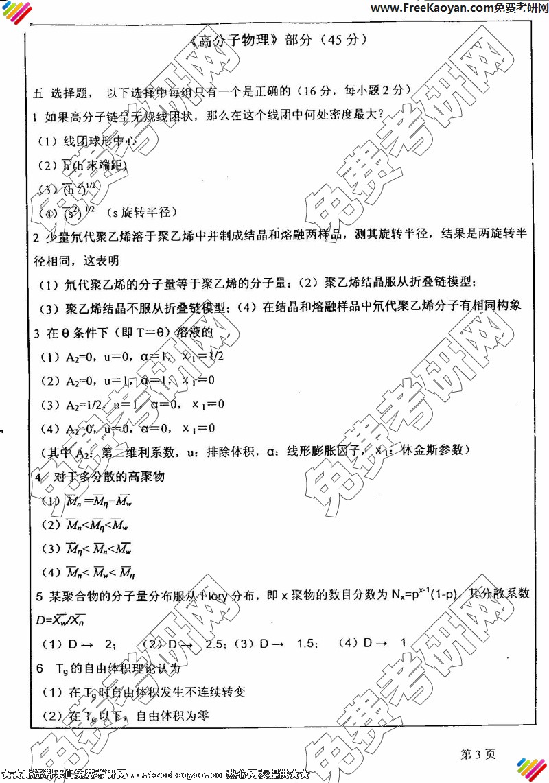 相关话题/华东师范大学 考研真题 高分子化学