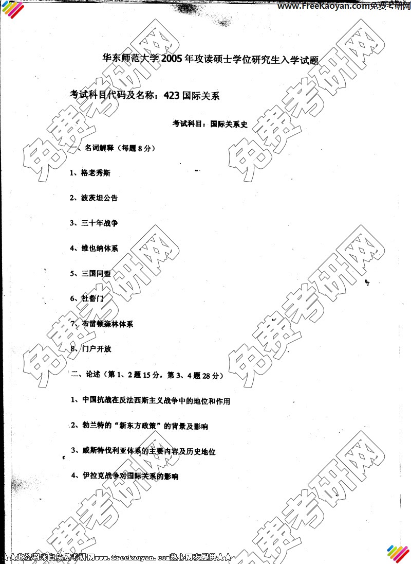 专业课考研经验 本站小编 FreeKaoyan 2018-01-22华南师范大学2005自然地理学名词解释:第四纪 假整合 阶地 丰水年组 径流模数 河网密度 顶级群落 低位沼泽 爱伦定律 生物阻限简答:1、山地降水与海拔的关系 2、地面坡度和降水侵蚀的关系 为什么3、土壤资源破坏的表现方面论述:人类活动与自然地理环境的关系分析题 略 ...