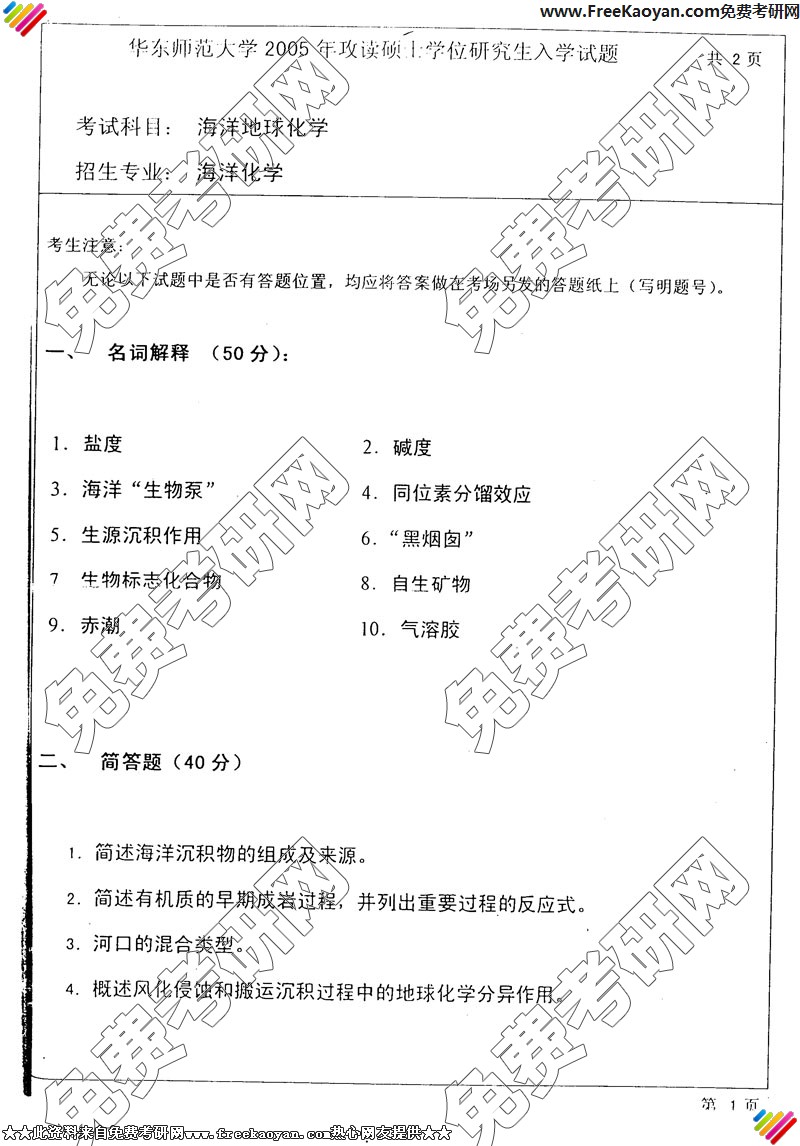 专业课考研经验 本站小编 FreeKaoyan 2018-01-22华南师范大学2005自然地理学名词解释:第四纪 假整合 阶地 丰水年组 径流模数 河网密度 顶级群落 低位沼泽 爱伦定律 生物阻限简答:1、山地降水与海拔的关系 2、地面坡度和降水侵蚀的关系 为什么3、土壤资源破坏的表现方面论述:人类活动与自然地理环境的关系分析题 略 ...