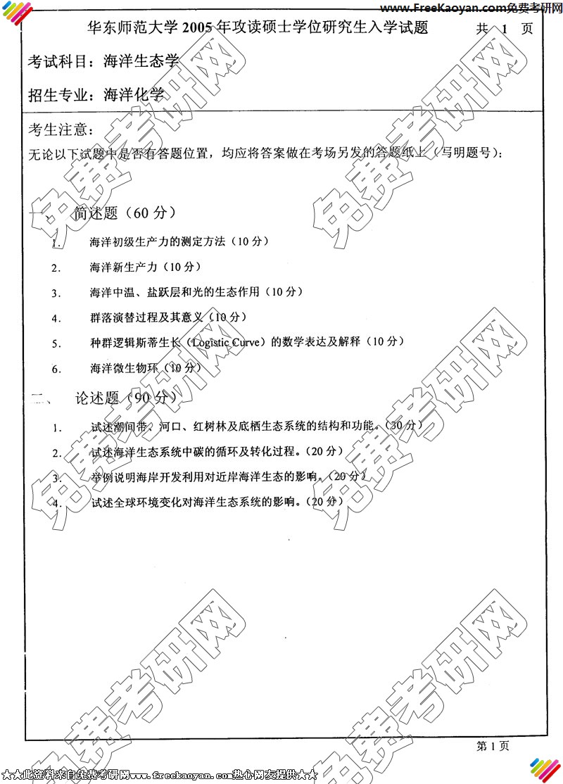 专业课考研经验 本站小编 FreeKaoyan 2018-01-22华南师范大学2005自然地理学名词解释:第四纪 假整合 阶地 丰水年组 径流模数 河网密度 顶级群落 低位沼泽 爱伦定律 生物阻限简答:1、山地降水与海拔的关系 2、地面坡度和降水侵蚀的关系 为什么3、土壤资源破坏的表现方面论述:人类活动与自然地理环境的关系分析题 略 ...