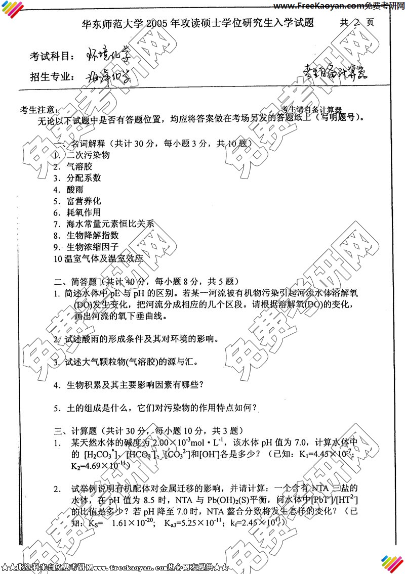 专业课考研经验 本站小编 FreeKaoyan 2018-01-22华南师范大学2005自然地理学名词解释:第四纪 假整合 阶地 丰水年组 径流模数 河网密度 顶级群落 低位沼泽 爱伦定律 生物阻限简答:1、山地降水与海拔的关系 2、地面坡度和降水侵蚀的关系 为什么3、土壤资源破坏的表现方面论述:人类活动与自然地理环境的关系分析题 略 ...