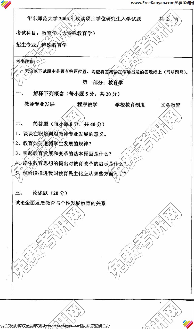 专业课考研经验 本站小编 FreeKaoyan 2018-01-22华东师范大学2005年考研真题-教育管理学