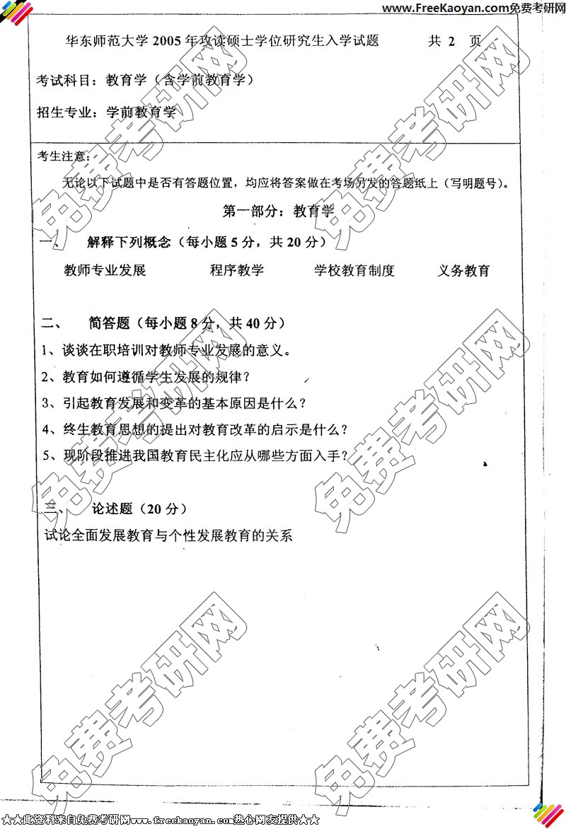专业课考研经验 本站小编 FreeKaoyan 2018-01-22华东师范大学2005年考研真题-教育学(含特殊教育学)