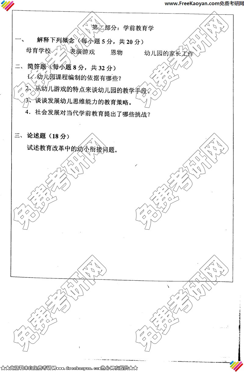 专业课考研经验 本站小编 FreeKaoyan 2018-01-22华东师范大学2005年考研真题-教育学(含特殊教育学)