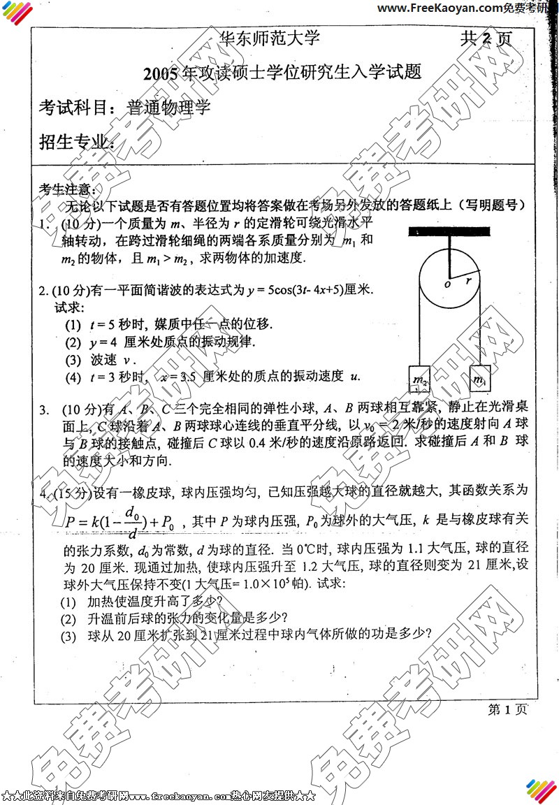专业课考研经验 本站小编 FreeKaoyan 2018-01-22华东师范大学2005年考研真题-普通化学原理