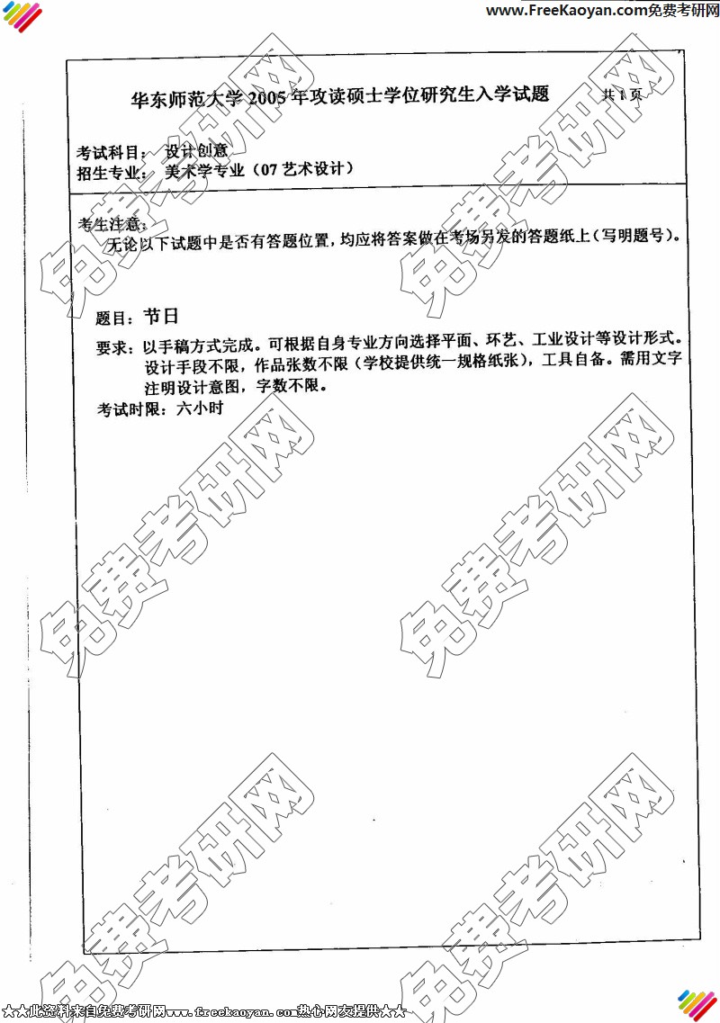 专业课考研经验 本站小编 FreeKaoyan 2018-01-22华东师范大学2005年考研真题-美术教育学