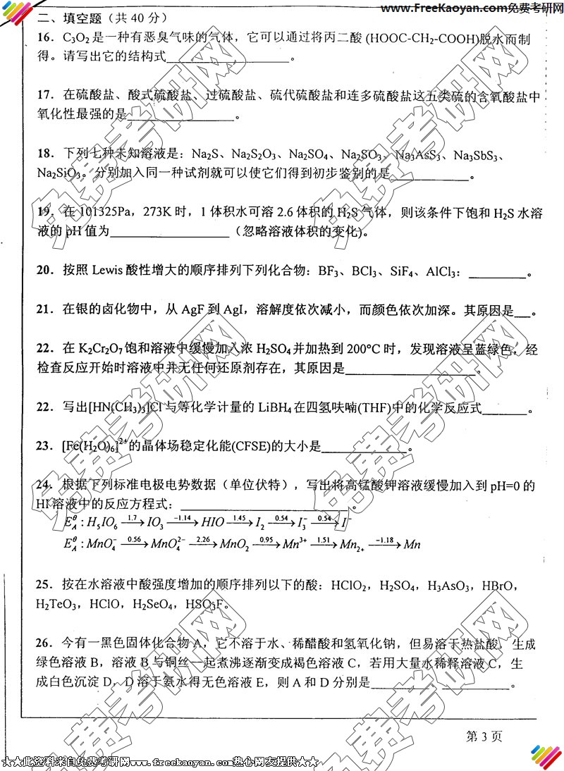 专业课考研经验 本站小编 FreeKaoyan 2018-01-22华东师范大学2005年考研真题-生物化学