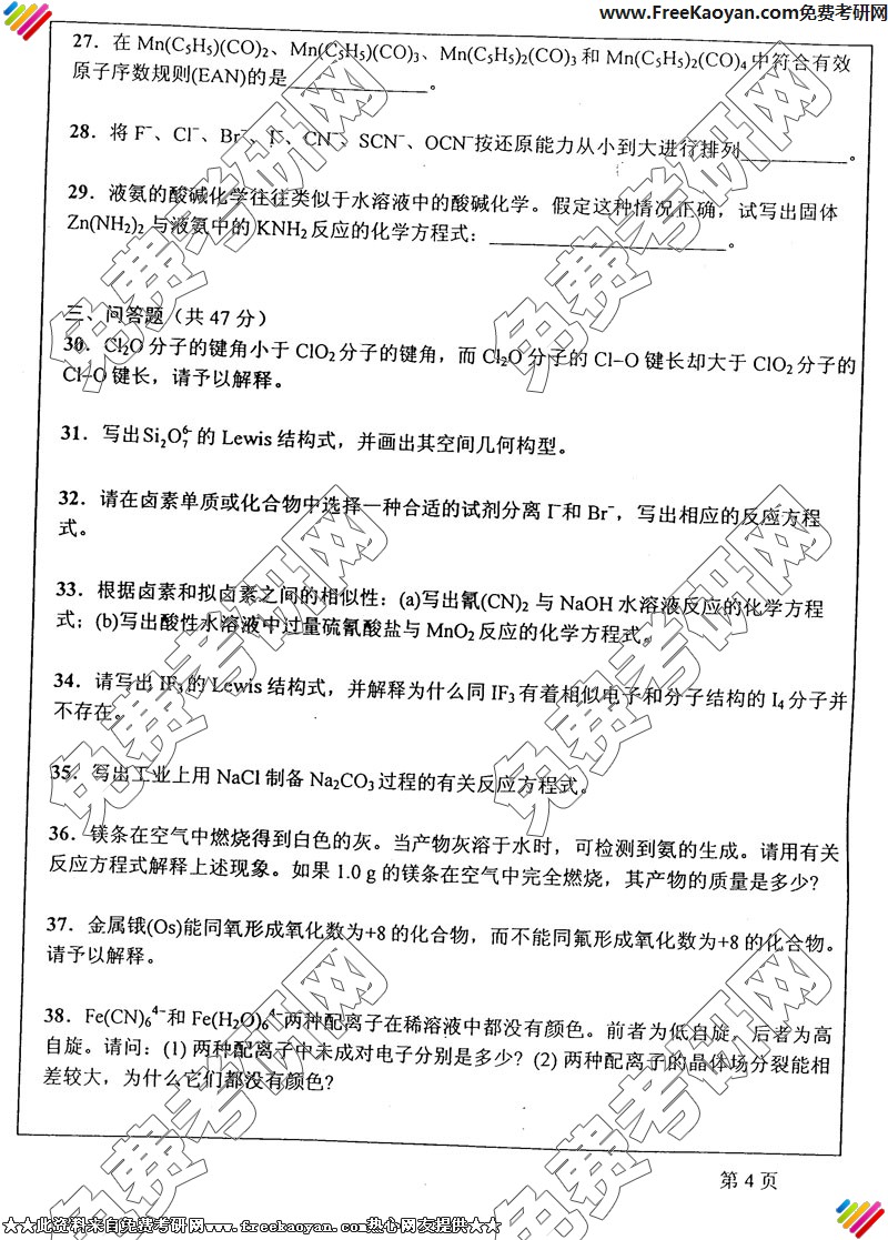 专业课考研经验 本站小编 FreeKaoyan 2018-01-22华东师范大学2005年考研真题-生物化学