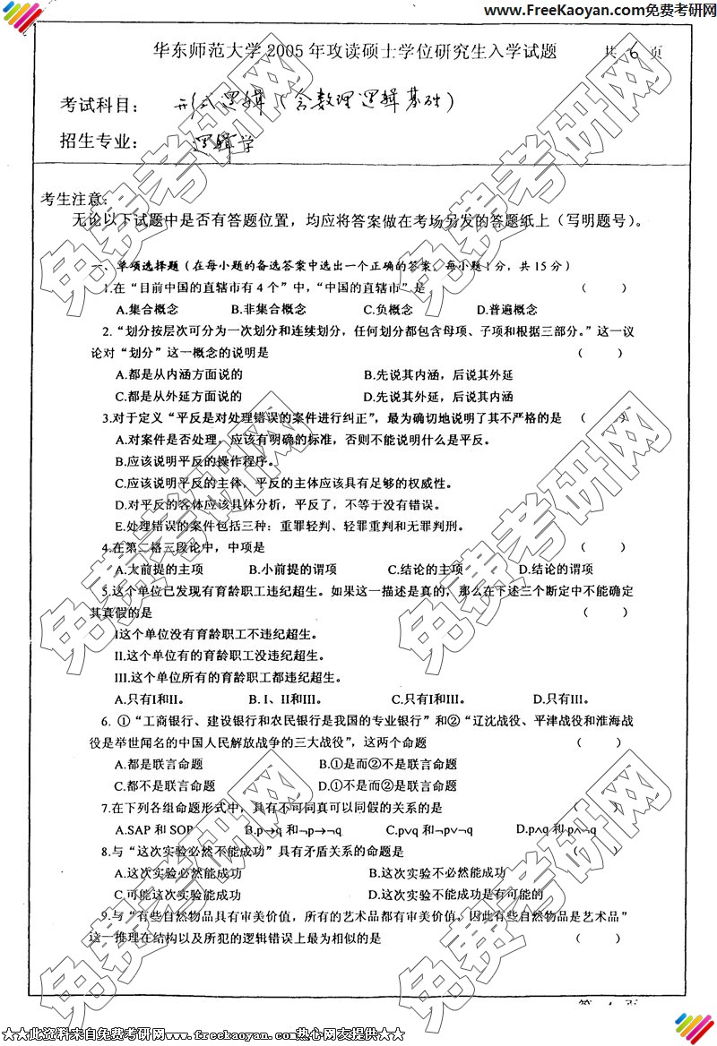 华东师范大学2005年考研真题-形式逻辑(含数理逻辑基础)