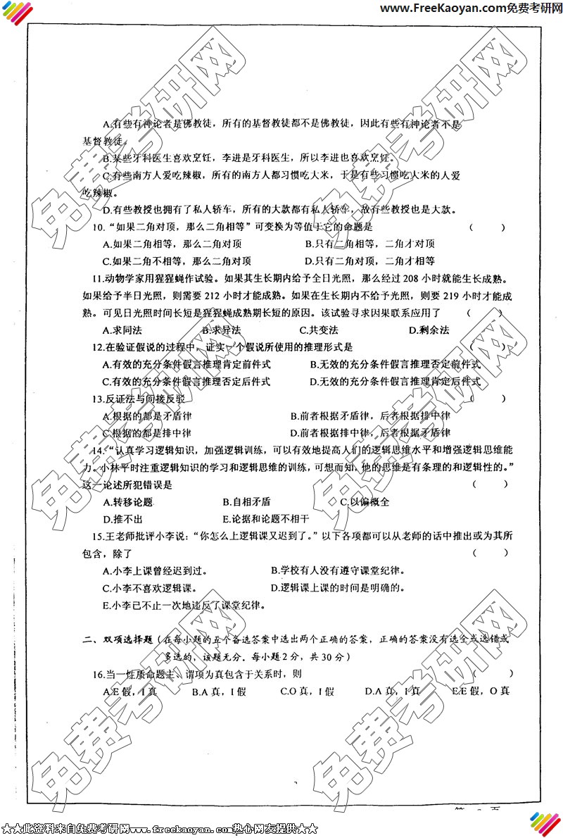 华东师范大学2005年考研真题-形式逻辑(含数理逻辑基础)(2)