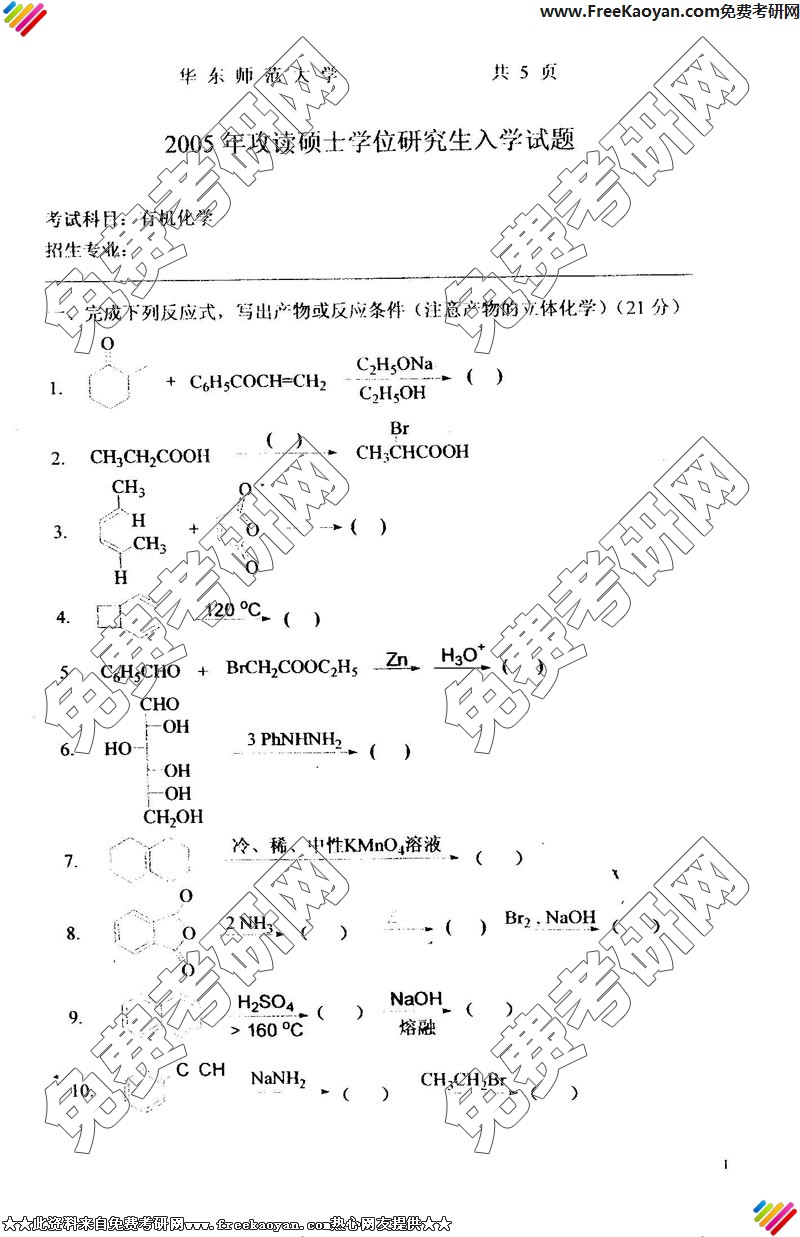 专业课考研经验 本站小编 FreeKaoyan 2018-01-22华东师范大学2005年考研真题-无机化学