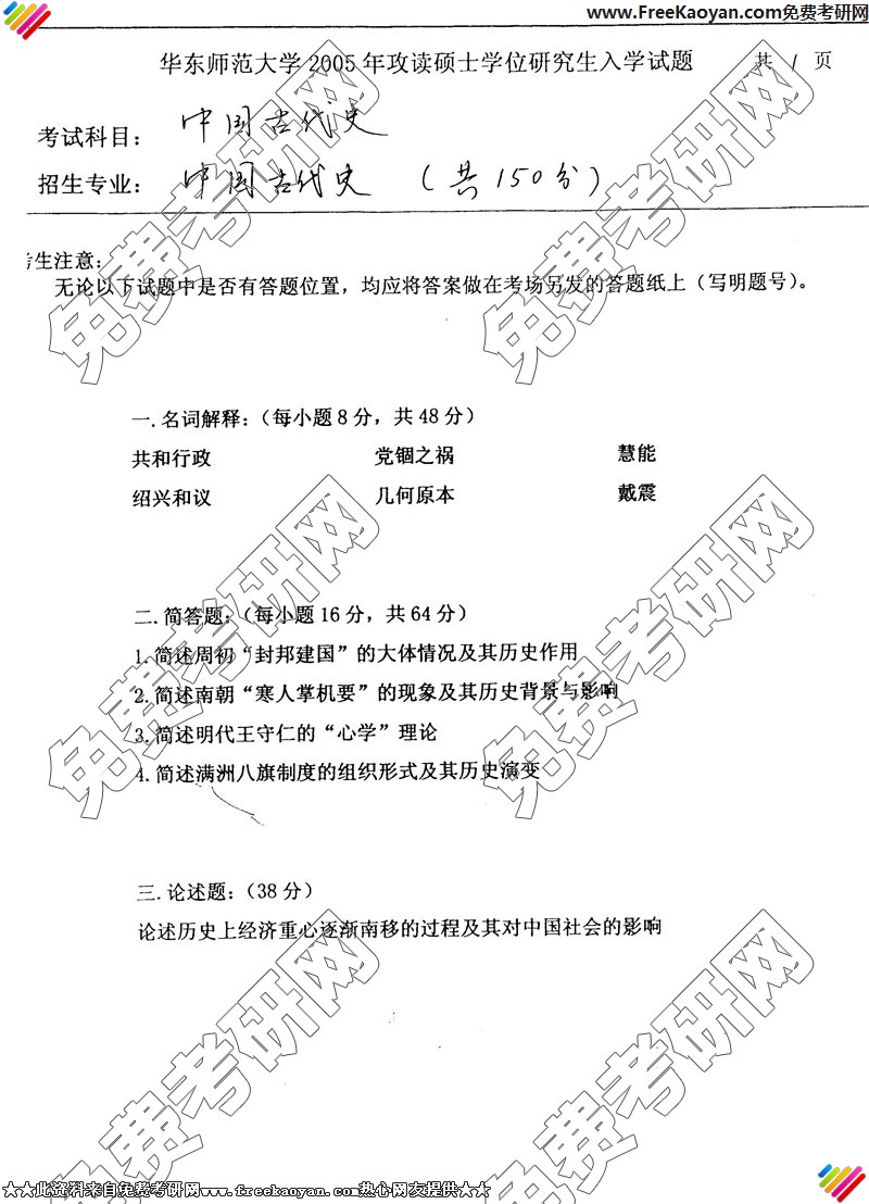 专业课考研经验 本站小编 FreeKaoyan 2018-01-22华东师范大学2005年考研真题-中国地理