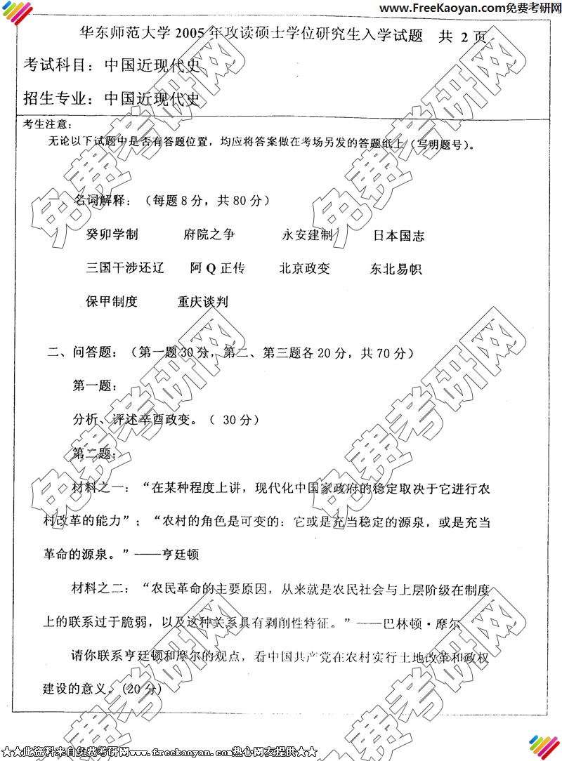 专业课考研经验 本站小编 FreeKaoyan 2018-01-22华东师范大学2005年考研真题-演唱