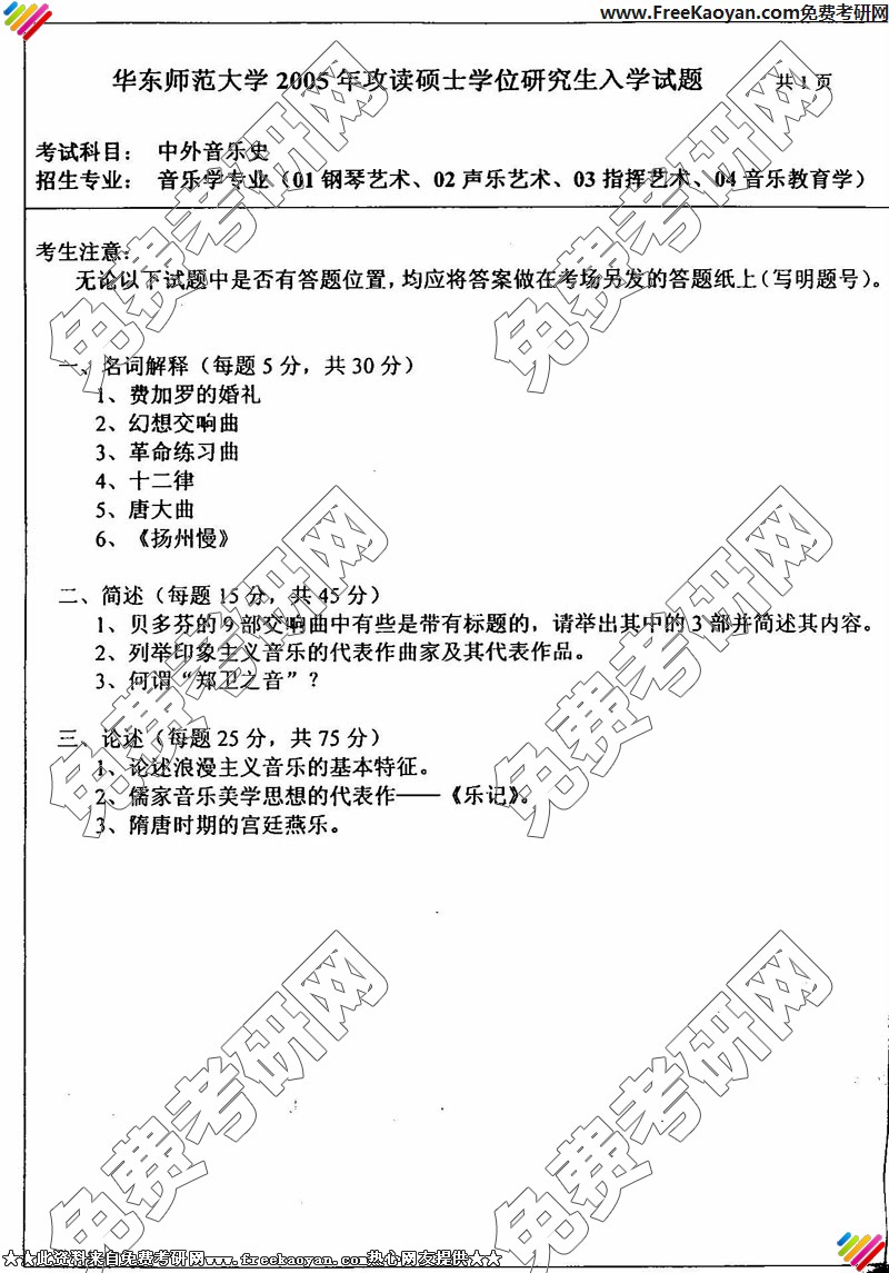 专业课考研经验 本站小编 FreeKaoyan 2018-01-22华东师范大学2005年考研真题-演唱