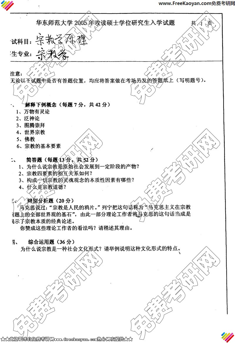 相关话题/考研真题 宗教学 华东师范大学 原理