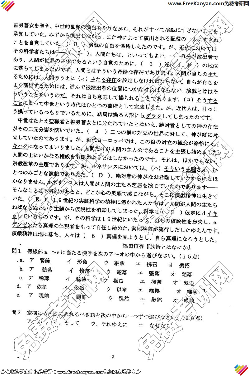 华东师范大学2005年考研真题-综合日语(2)