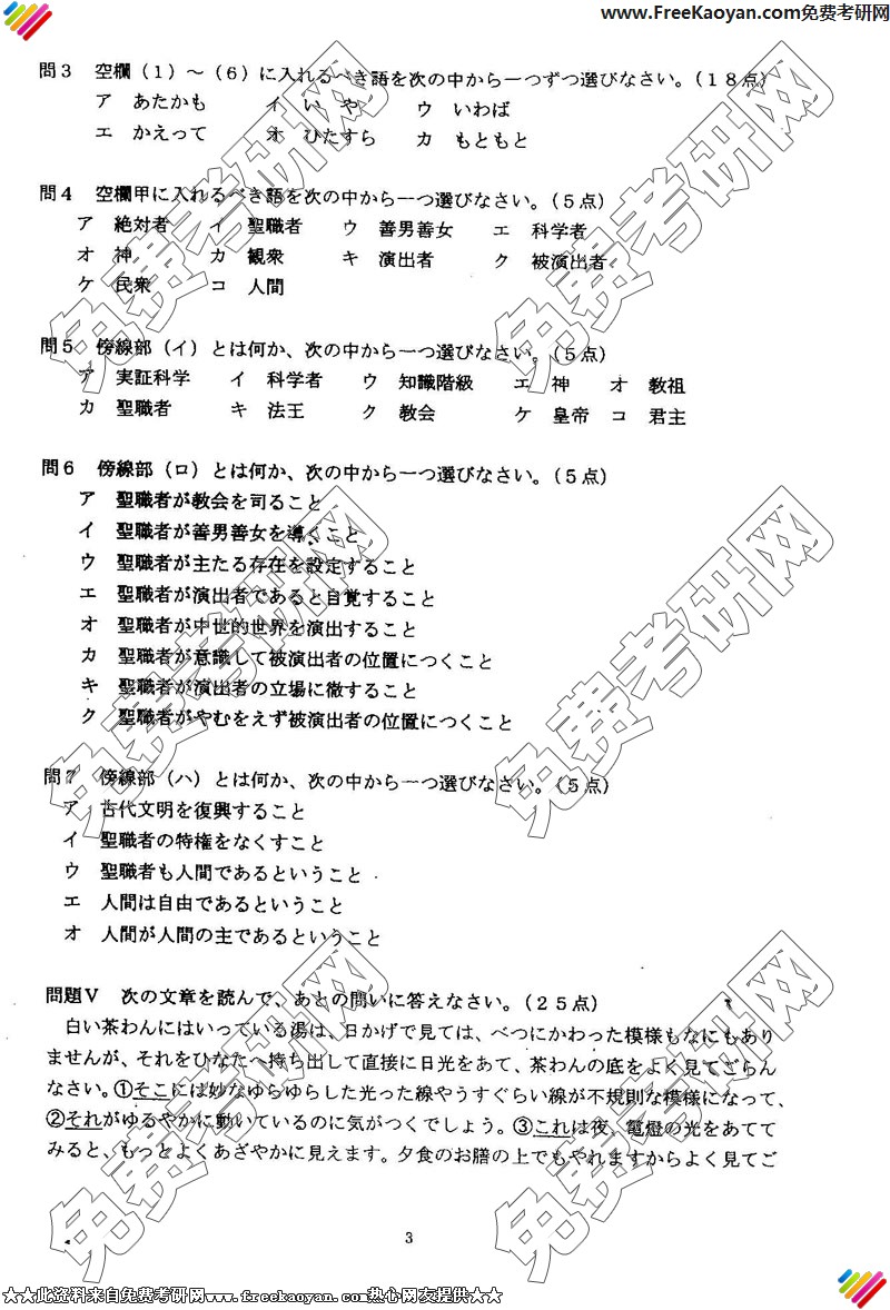 华东师范大学2005年考研真题-综合日语(3)