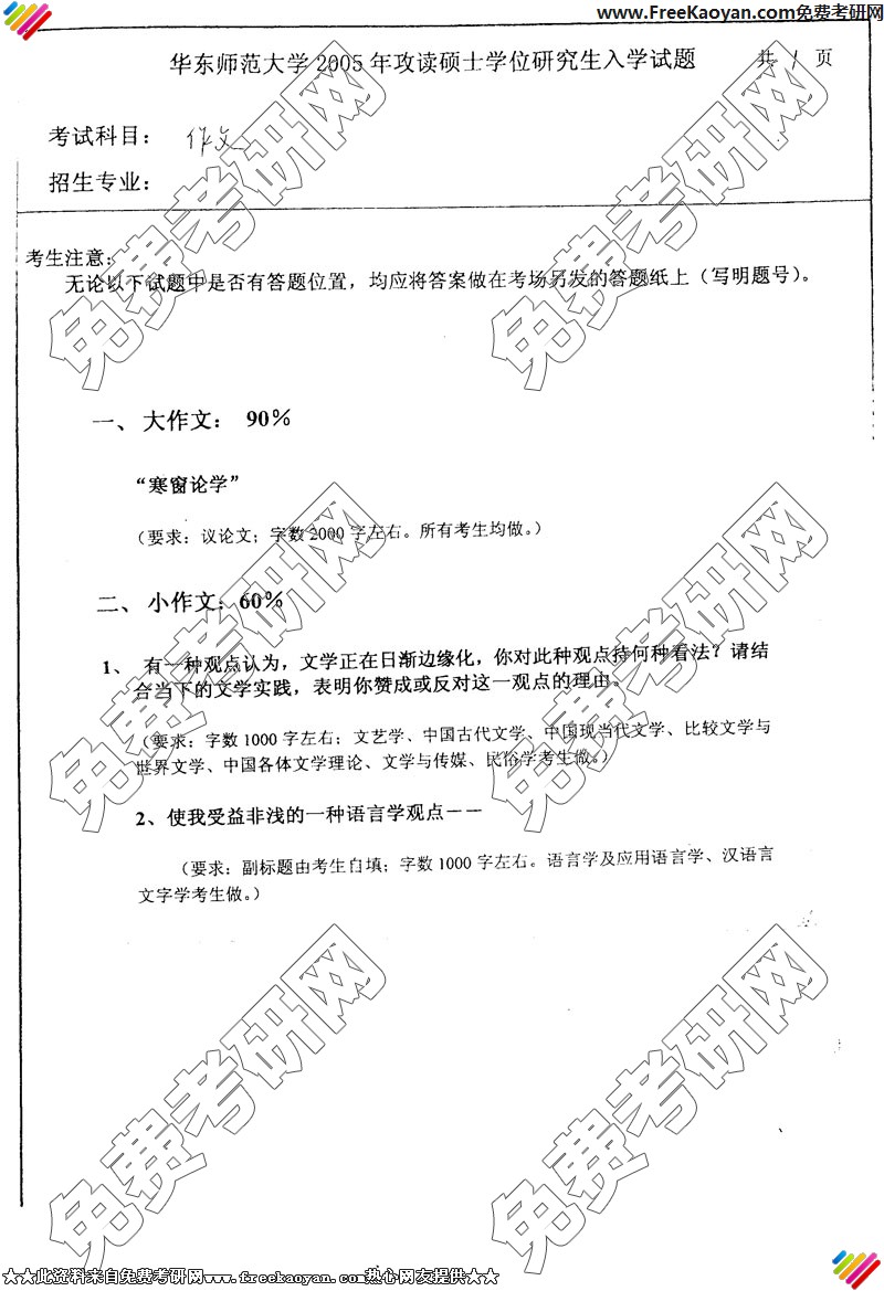 华东师范大学2005年考研真题-作文第二种