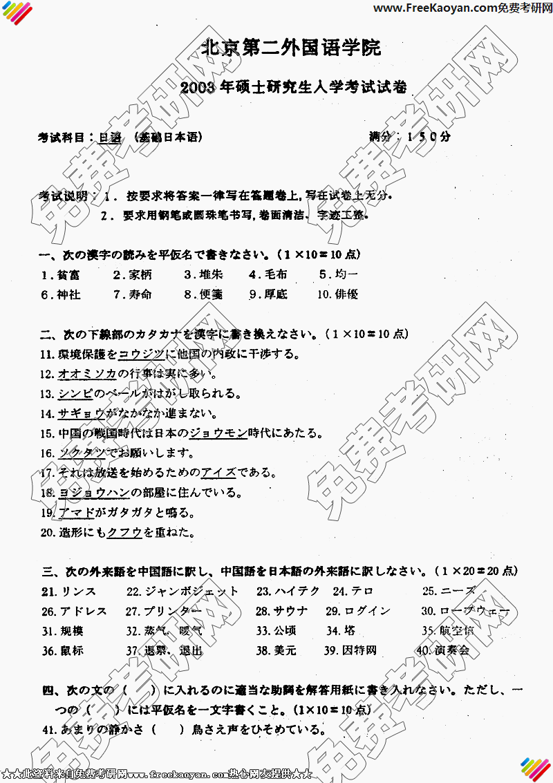 北京第二外国语学院2003年考研真题-日语(基础日本语)