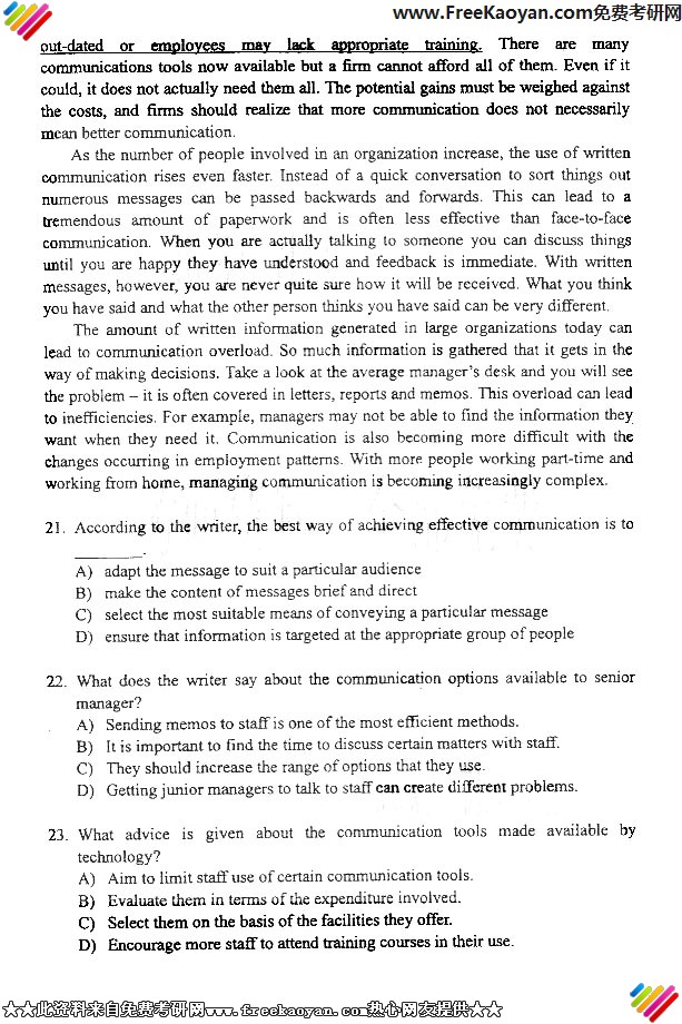北京第二外国语学院2005年考研真题-二外英语(12)