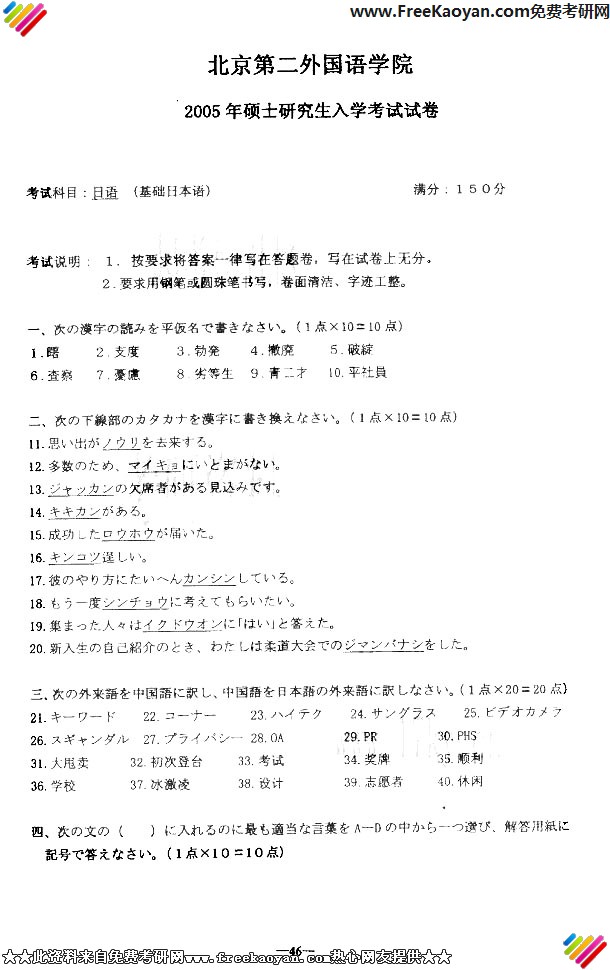 相关话题/考研真题 北京第二外国语学院 日语 基础