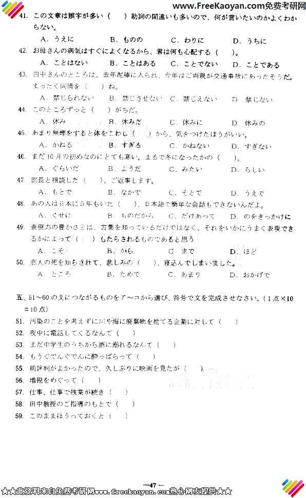相关话题/考研真题 北京第二外国语学院 日语 基础