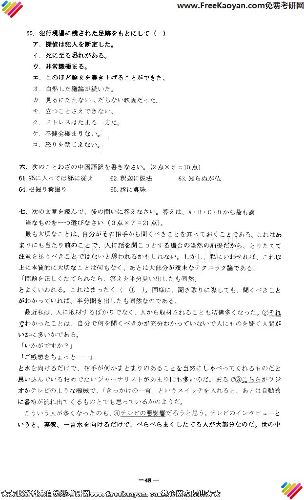 北京第二外国语学院2005年考研真题-基础日语(3)