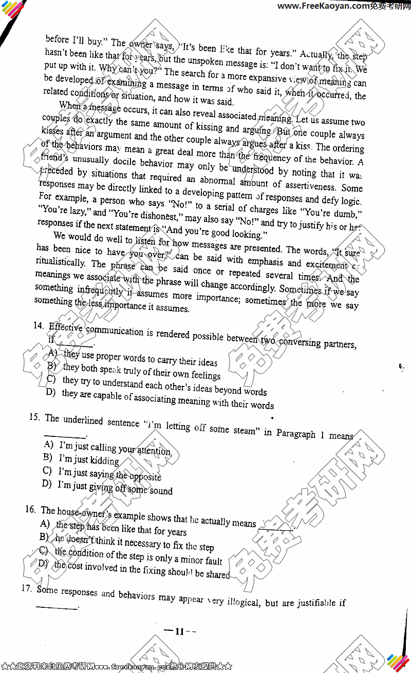 北京第二外国语学院2006年考研真题-二外英语(11)