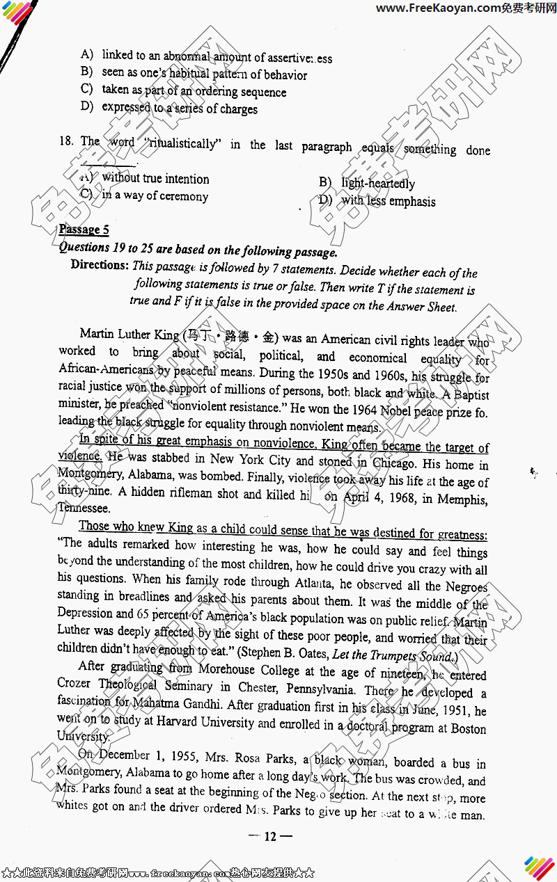 北京第二外国语学院2006年考研真题-二外英语(12)