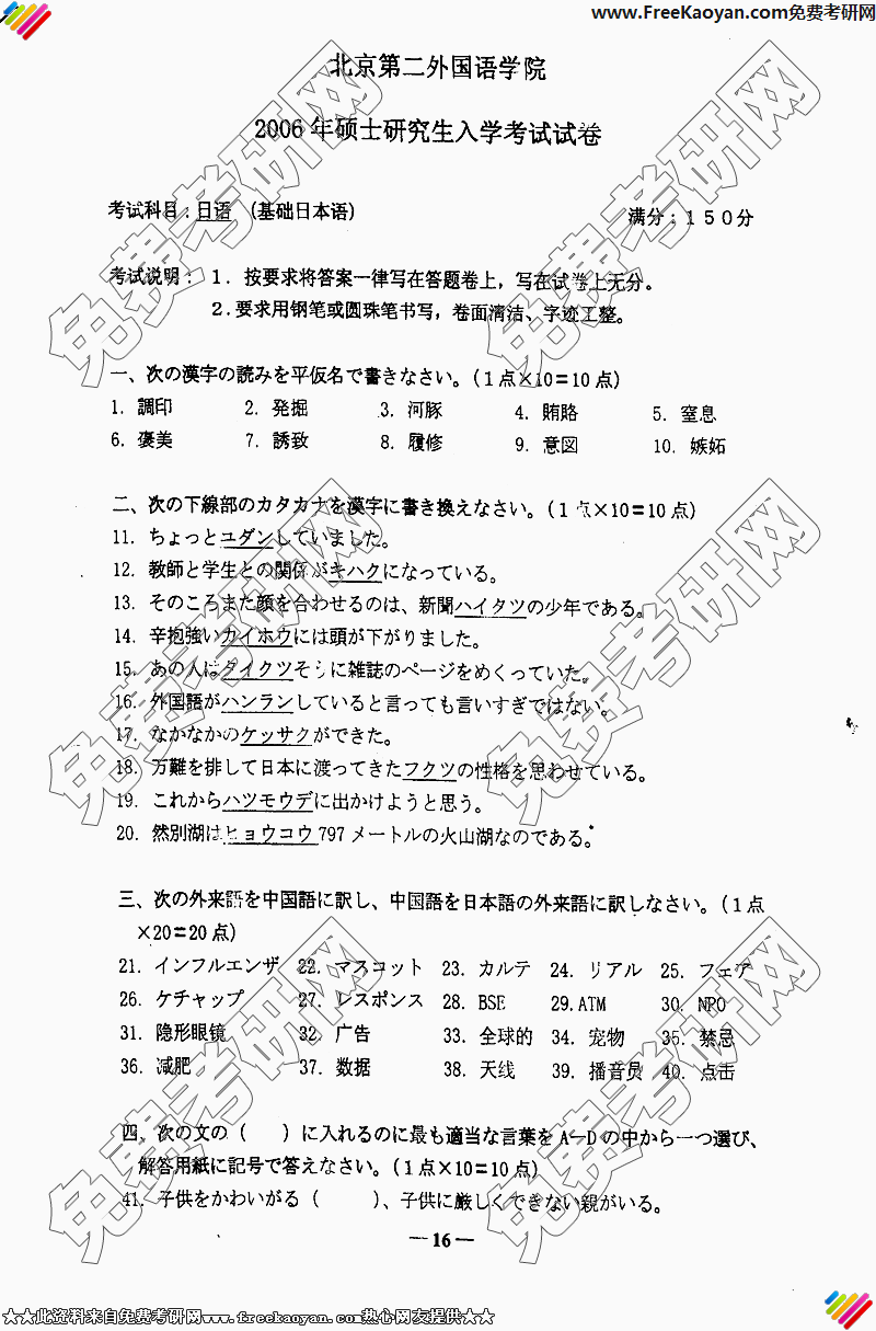 专业课考研经验 本站小编 FreeKaoyan 2018-01-22(北京第二外国语学院2004研)I. GRAMMARDirections: In this section, there are 13 sentences each with one word or phrase missing. Choose one of the four choices mar ...