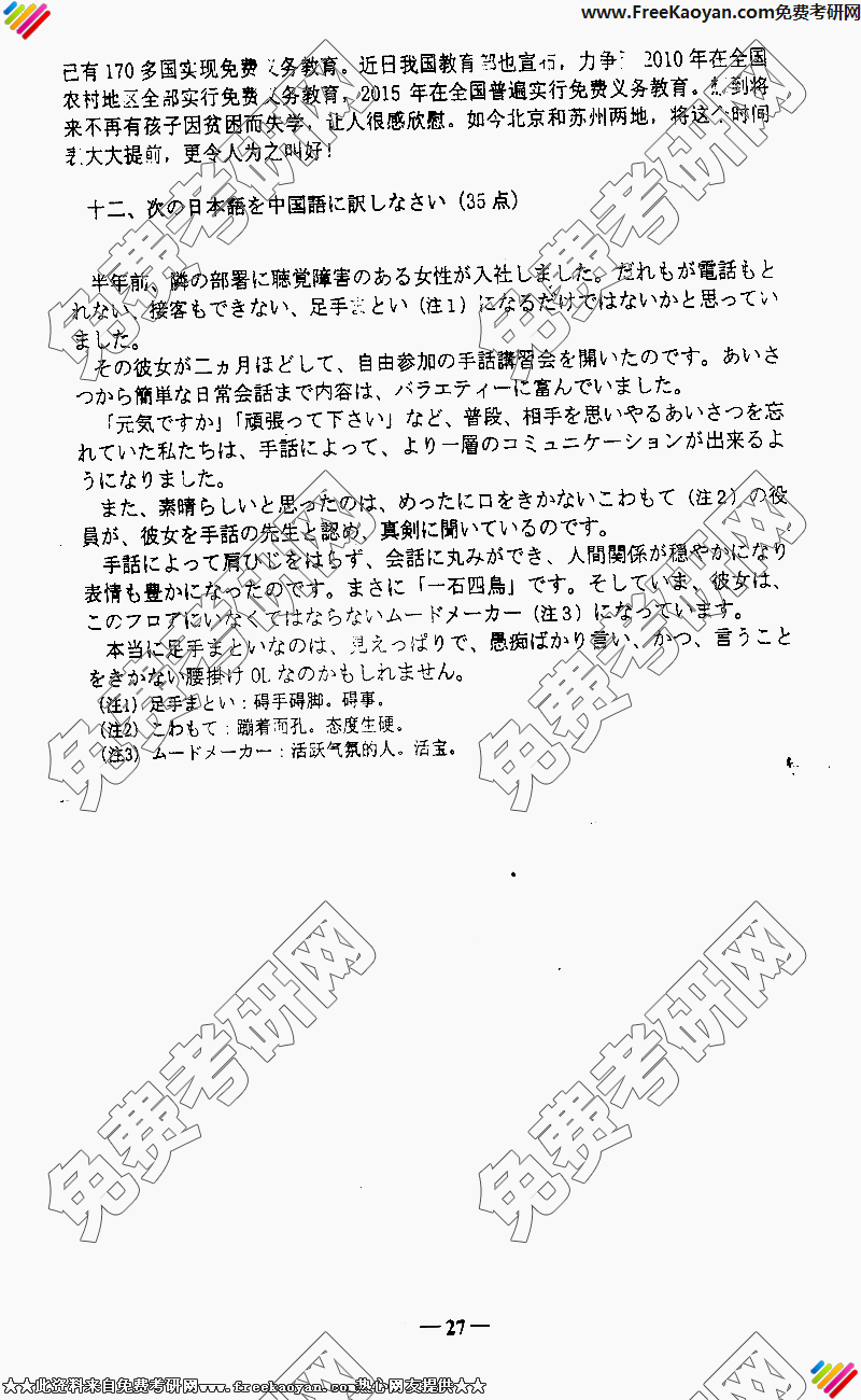北京第二外国语学院2006年考研真题-综合考试(日语)(5)