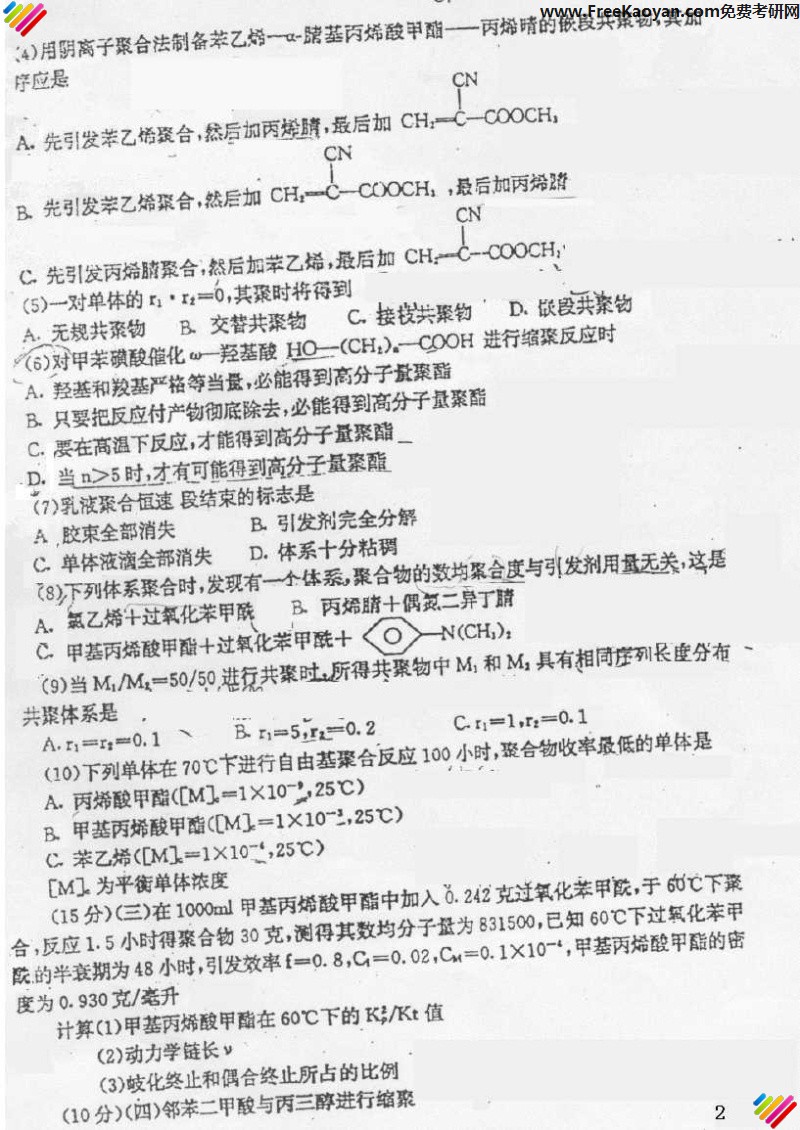 相关话题/中国科学技术大学 考研真题 高分子化学