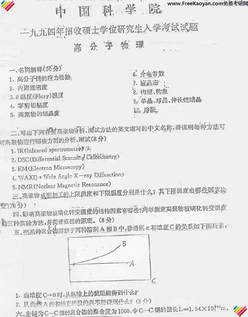 专业课考研经验 本站小编 FreeKaoyan 2018-01-22中国科学技术大学1994年考研真题-高分子化学