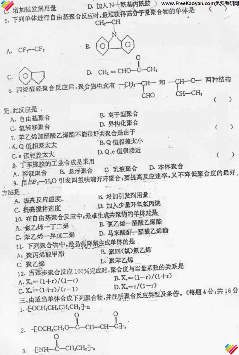 专业课考研经验 本站小编 FreeKaoyan 2018-01-22中国科学技术大学1989年考研真题-高分子化学