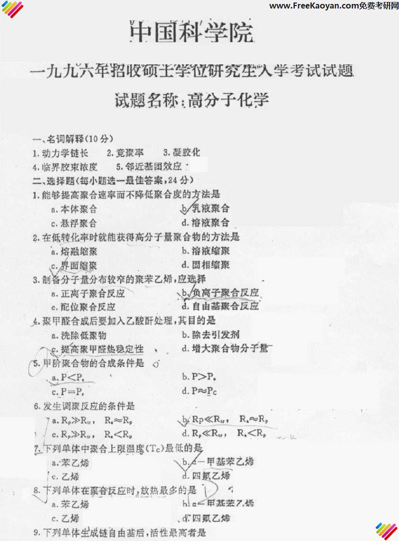 相关话题/中国科学技术大学 考研真题 高分子化学