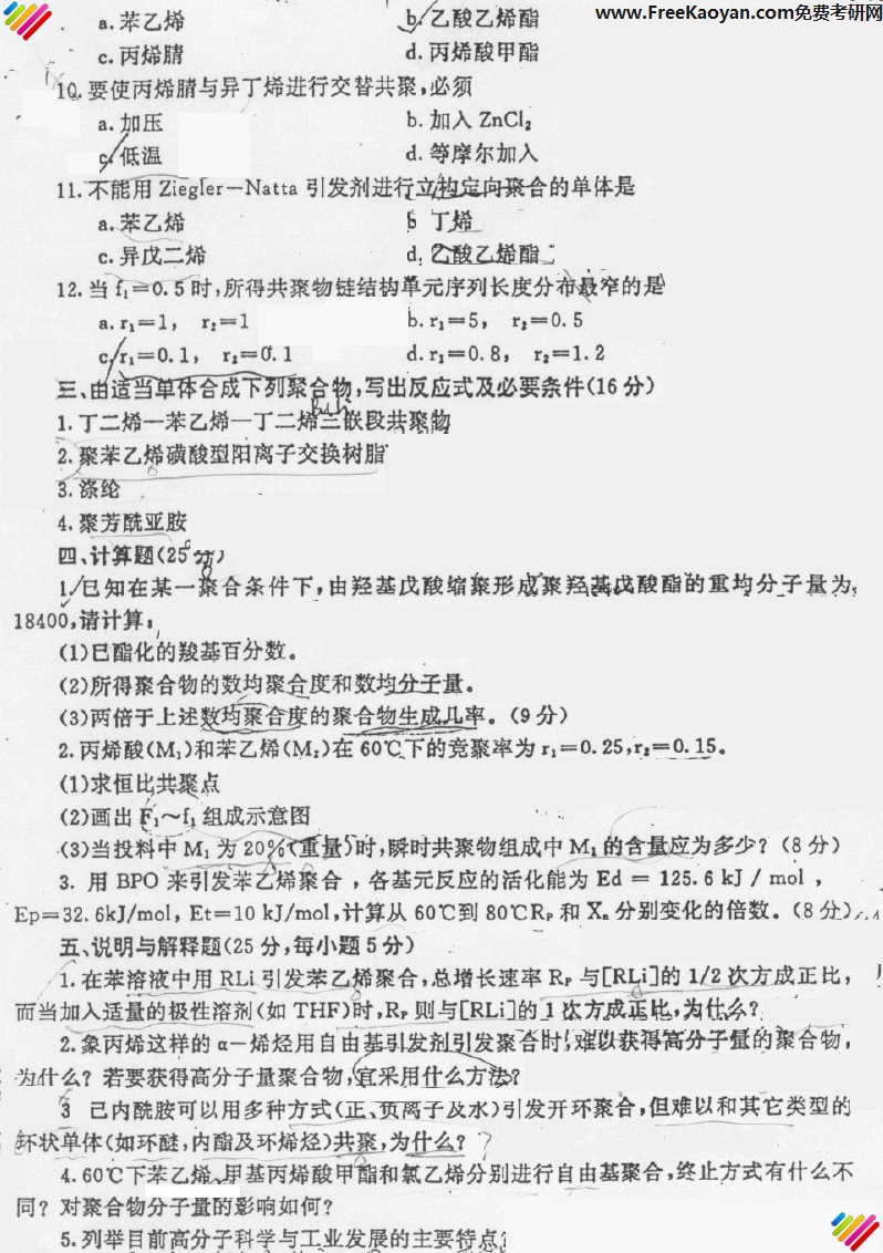 相关话题/中国科学技术大学 考研真题 高分子化学