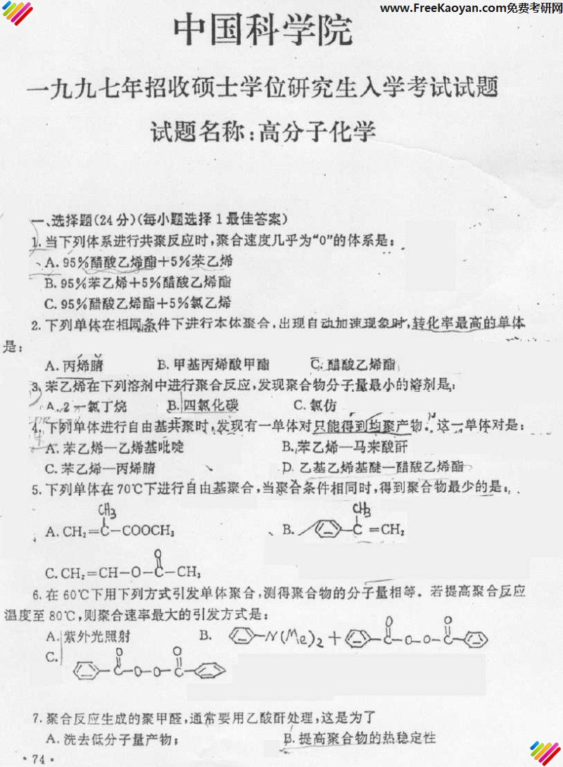 相关话题/中国科学技术大学 考研真题 高分子化学