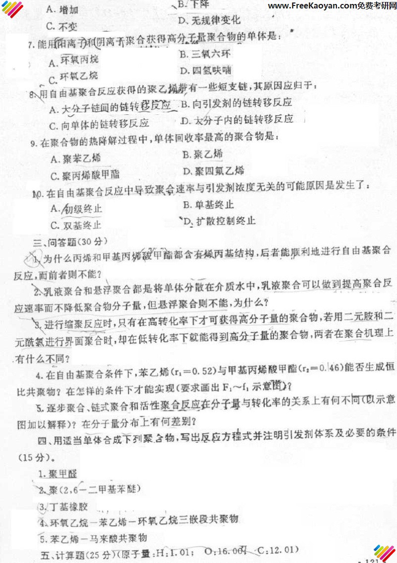 相关话题/中国科学技术大学 考研真题 高分子化学