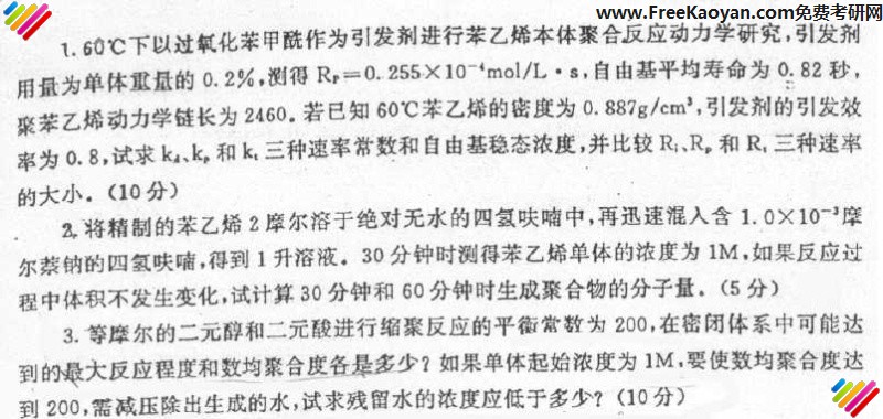 相关话题/中国科学技术大学 考研真题 高分子化学