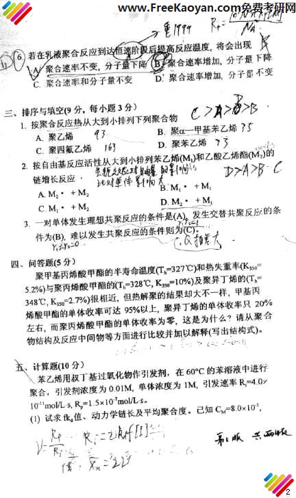 相关话题/中国科学技术大学 考研真题 高分子化学与物理