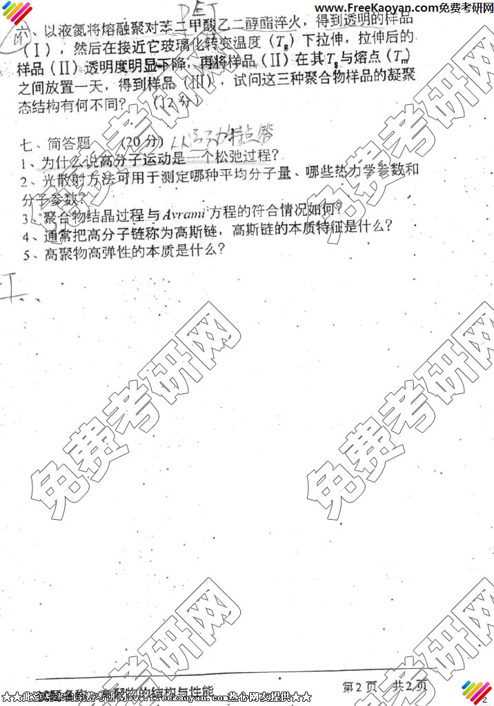 专业课考研经验 本站小编 FreeKaoyan 2018-01-22中国科学技术大学2000年考研真题-高分子化学与物理
