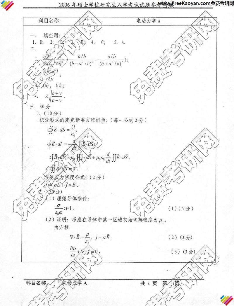 相关话题/考研真题 电动力学 中国科学技术大学 答案