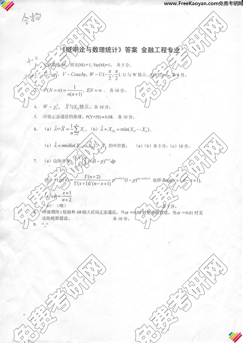 专业课考研经验 本站小编 FreeKaoyan 2018-01-22中国科学技术大学2006年考研真题-概率统计