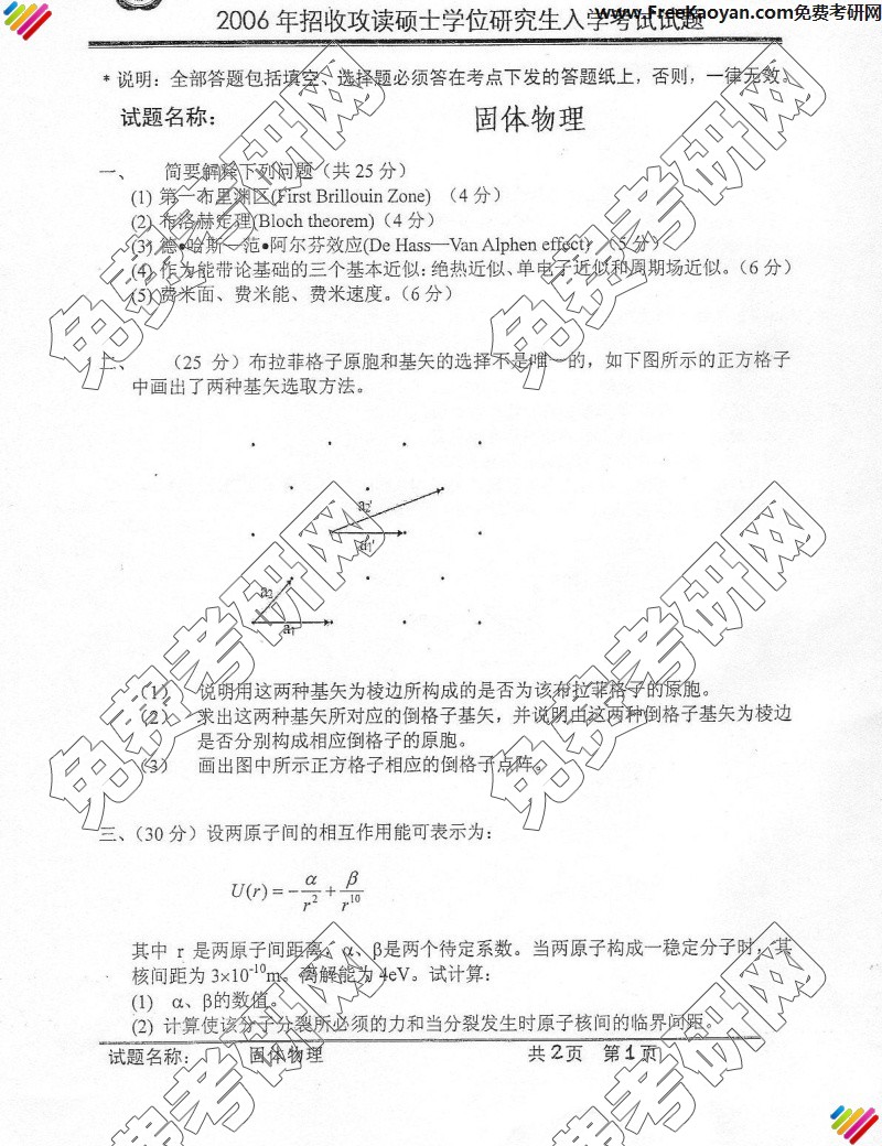 中国科学技术大学2006年考研真题-固体物理