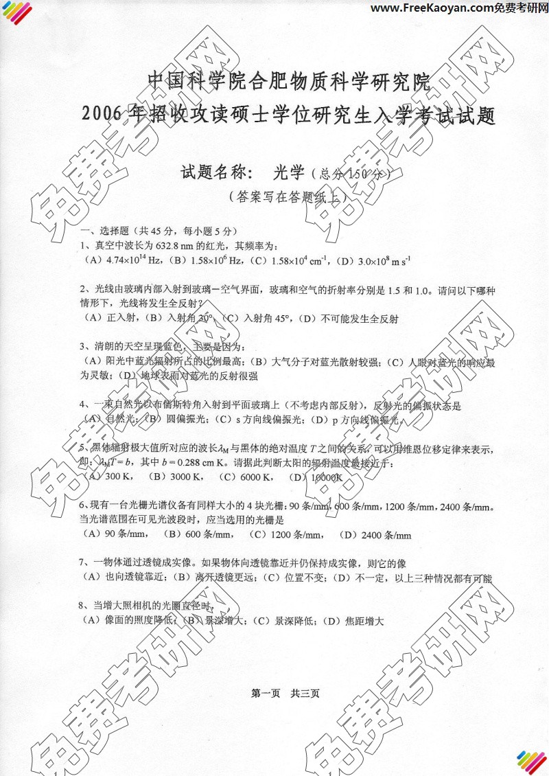 专业课考研经验 本站小编 FreeKaoyan 2018-01-22中国科学技术大学2006年考研真题-分析化学