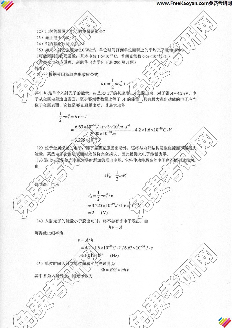专业课考研经验 本站小编 FreeKaoyan 2018-01-22中国科学技术大学2006年考研真题-电动力学答案