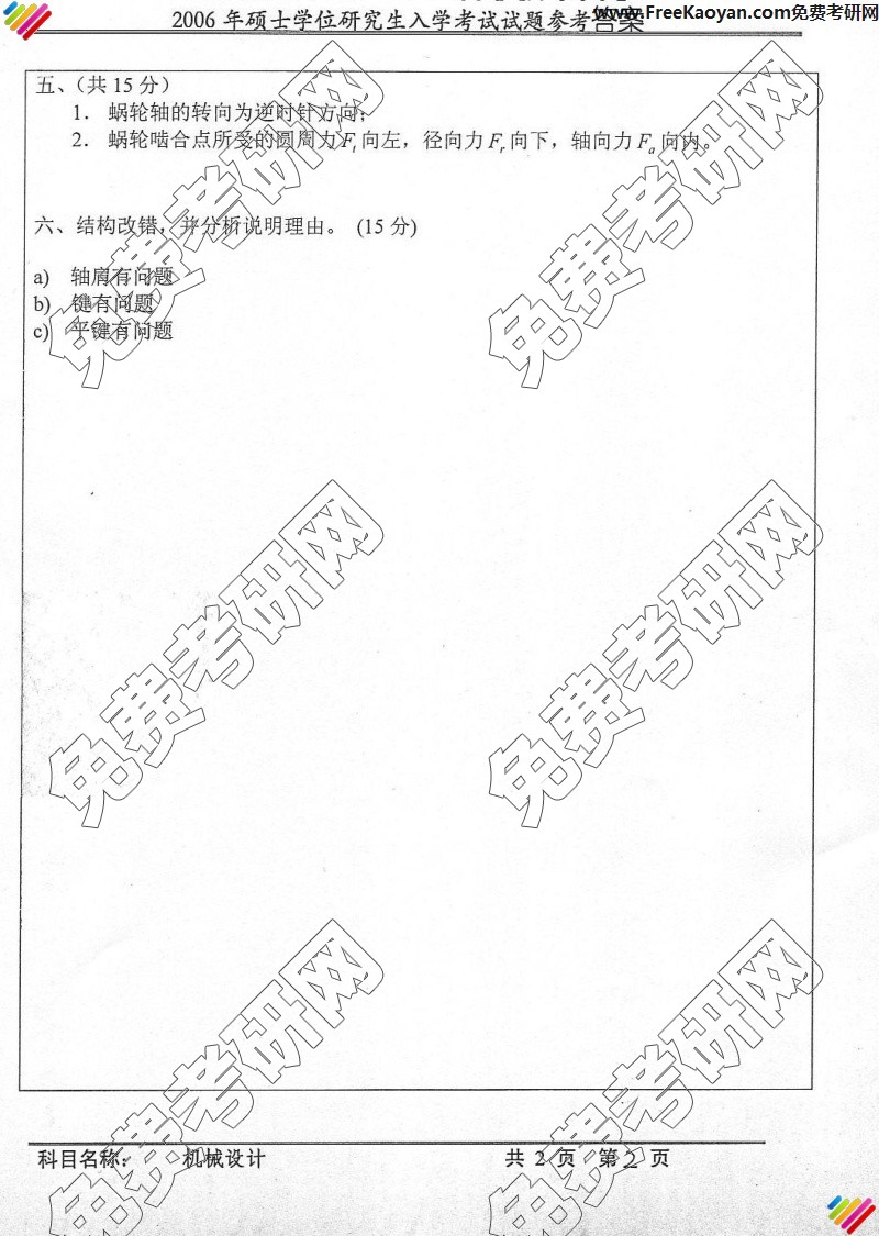 专业课考研经验 本站小编 FreeKaoyan 2018-01-22中国科学技术大学2006年考研真题-机械设计